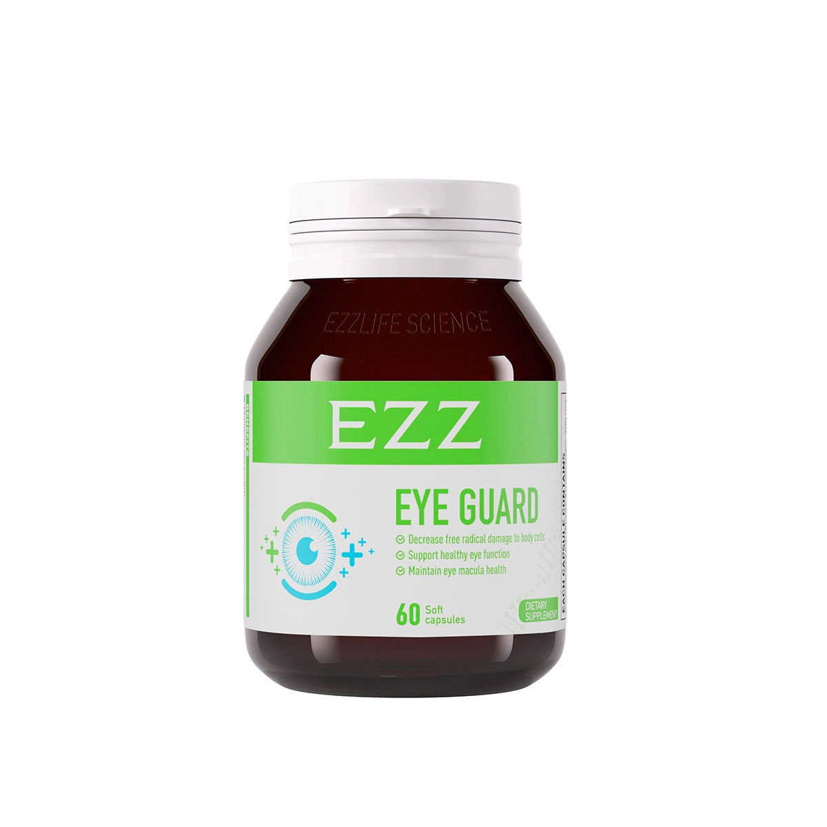EZZ Eye Guard is an eye formula containing key eye development compounds found in high concentrated Omega 3 triglycerides, plus other important antioxidant nutrients to protect and maintain eye health. Lutein and zeaxanthin are found in high concentrations in the macula (retina) of the eyes and help protect and maintain eye tissue, protect the eyes from free radical damage, support healthy vision and help maintain healthy eye macula.